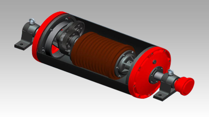 TDY型油冷式電滾筒是我國目前廣泛采用的普通型電滾筒。滾筒電機由專業(yè)的電滾筒電機廠配套,其性能指標不低于同等功率的我國Y系列電機的指標。該系列滾筒齒輪采用表面磨齒處理,具有結(jié)構(gòu)緊湊,運行平穩(wěn),噪音低 ,安裝方便等優(yōu)點。廣泛應(yīng)用于礦山、港口、熱電、冶金、建材、混凝土等各部門的中小型帶式輸送機。
